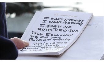 Внимание СМИ привлёк фрагмент, где маркером в блокноте было написано: «Я ничего не хочу. Я ничего не хочу. Я не хочу “услуги за услугу”. Сказать Зеленскому сделать правильную вещь. Это последнее слово президента США». Причём фамилия президента Украина фигурировала там как«Zellinsky», когда как правильно по-английски она пишется — Zelensky.